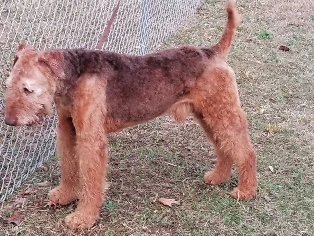 Because I have been researching and breeding Airedales for over 45 years. I wanted a dog that looked good, standing or moving, one that would catch the eye, by his beauty, size, coat and conformation, and natural fearless terrier temperment with enhanced guard instincts. You simply cannot find a finer Airedale, anywhere, for any price, at any time.