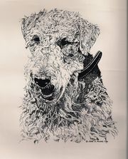 Pictured above is Louie, my first Airedale. He was about 24" at the shoulder, 65lbs, with muscles as hard as a rock. He was a very good watch dog, but I'm not sure if he would have made a guard dog. His coat was not as hard as I like now, but he was squarely built, well proportioned, and fearless. If I didn't learn anything else from